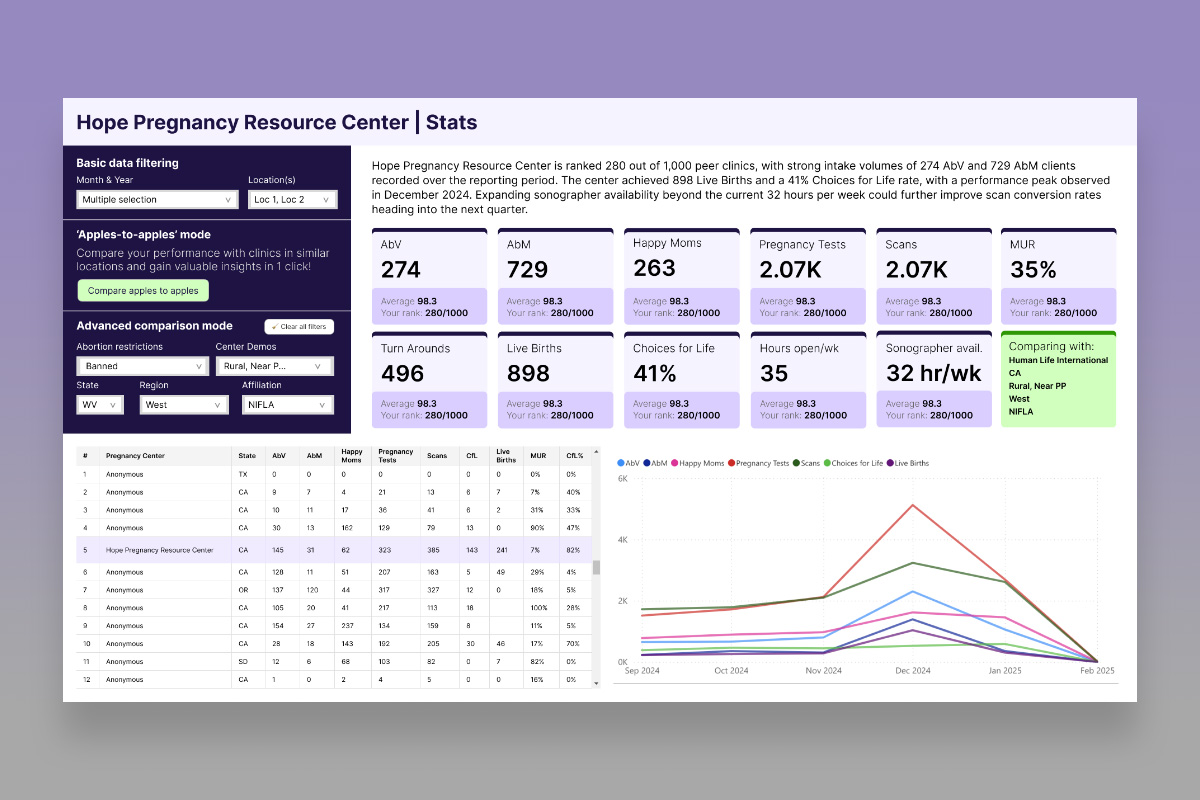 With over 1,300 partner centers onboarded and more than 2,100 machines processed through the platform, the impact of this infrastructure is felt in pregnancy centers across the country.