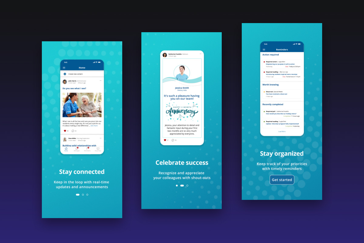 The client aimed to create a platform that unites healthcare management with field staff in one seamless experience. Our team developed a custom mobile app and backend system integrated with the client’s existing website and database. The app bridges the gap between management and nursing teams, offering intuitive tools for communication, announcements, employee recognition, and access to educational resources.