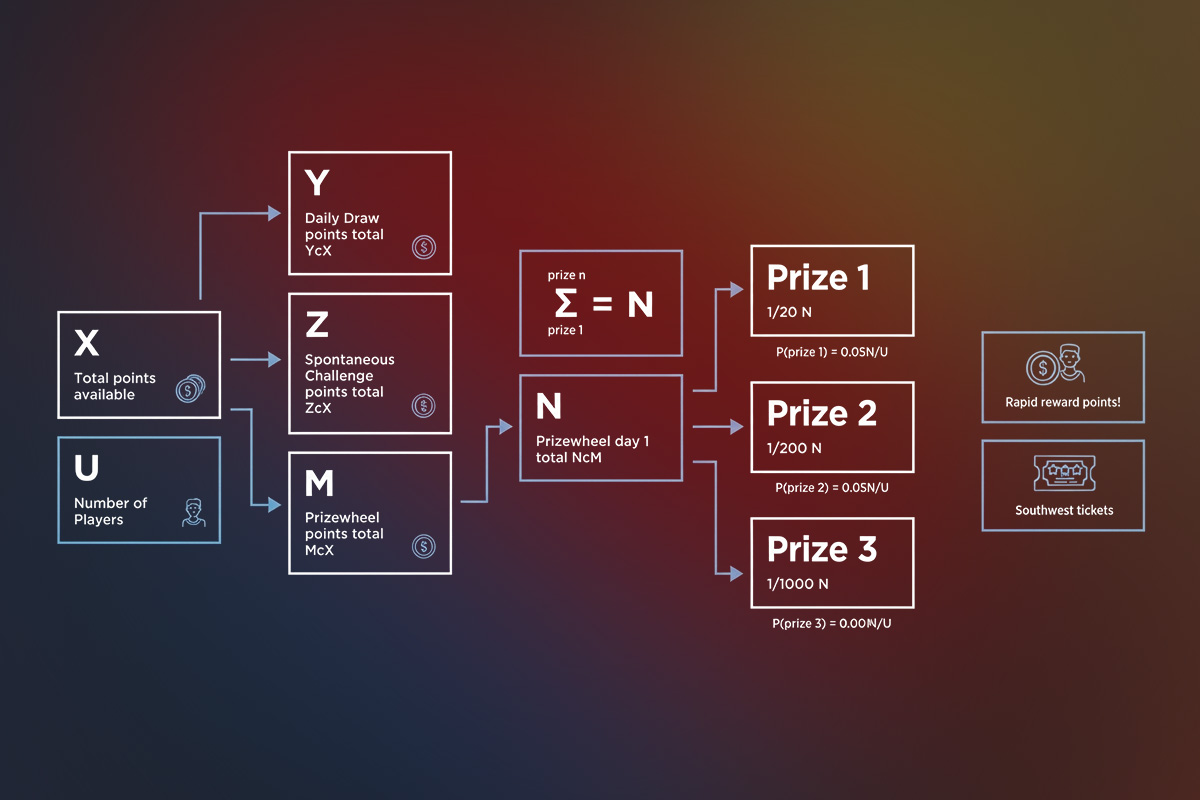 User experience, gameplay, and point distribution were integral to the platform. Players needed to have a seamless onboarding experience, interactive gameplay, and a transparent point allocation system. In addition, we architected a system to scale and support Southwest’s future online contests. New Normal translated the dollar value of the airline point system so we could bring the contest into tax compliance through automatically generated DocuSign paperwork for winners. Details, details, details translated into math, math, math